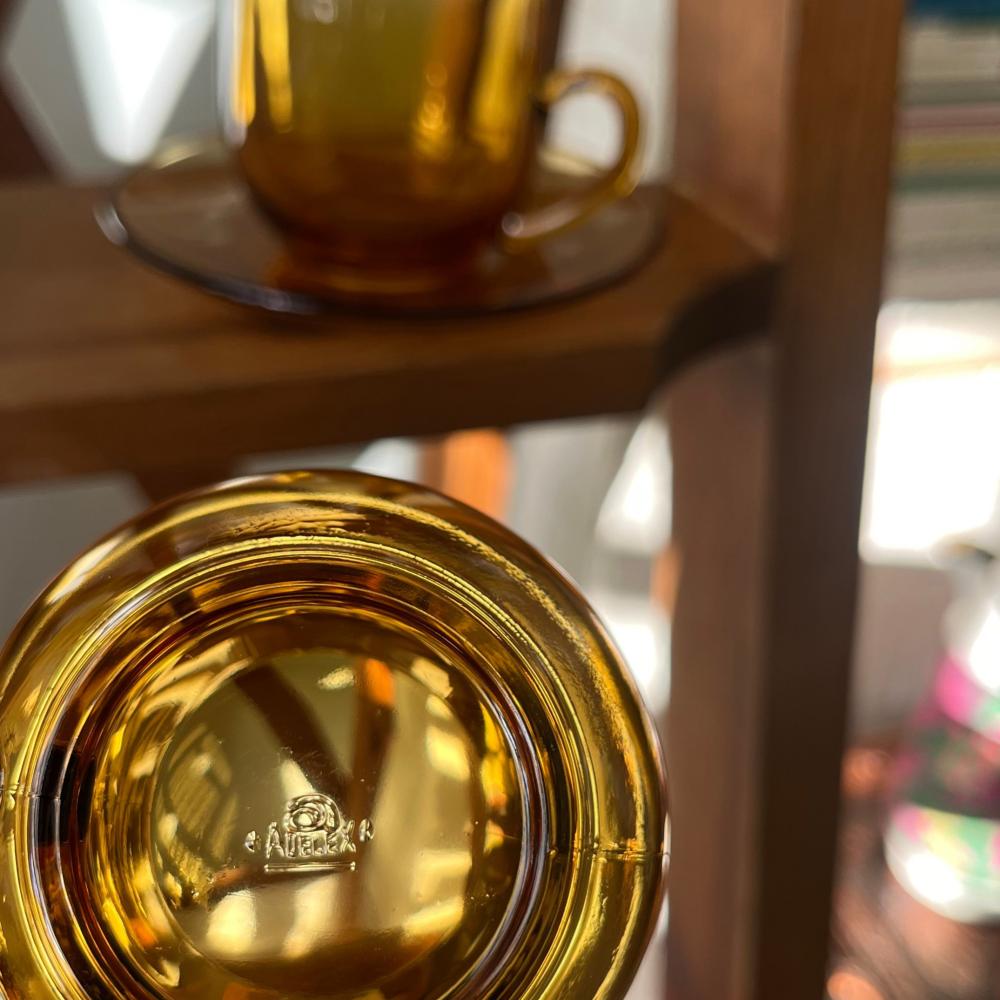 This vintage mug has a different story than other amber colored mugs - and is a rare Japanese-made ADELEX brand.